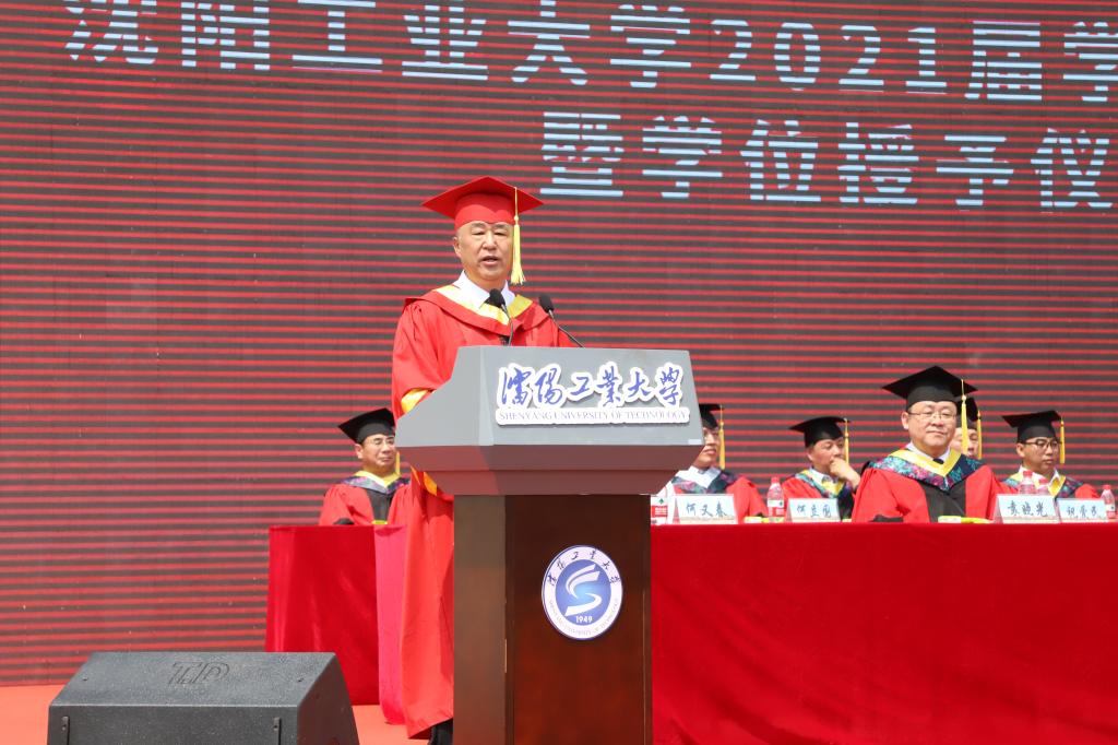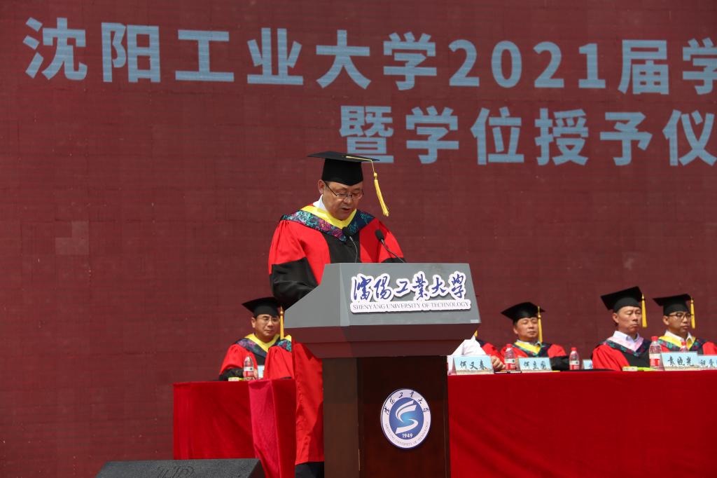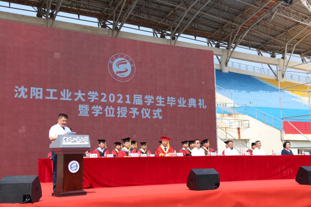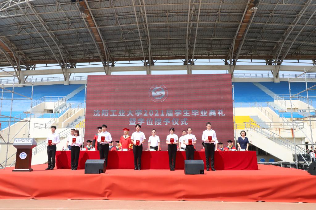 在典礼上,副校长袁晓光宣读学校2021届本科生、研究生毕业授位决定文件及2021届辽宁省优秀毕业生表奖文件。全体校领导、校友代表为辽宁省优秀毕业生代表颁奖。