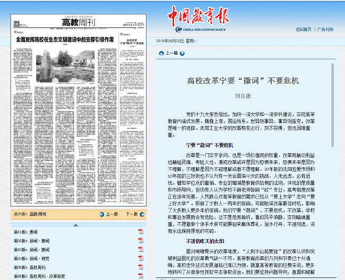 校党委书记刘自康在校园媒体发表的关于改革的特约评论员文章被4月22日出版的《中国教育报》以《高校改革宁要“微词”不要危机》为题署名刊登,文章一经发表,便在社会上引发广泛关注和强烈反响,人民网、光明网、中国青年网等多家媒体进行转载报道。